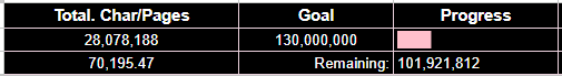 I set myself a goal of 1,800,000 characters to read during May, and I can happily say that I surpassed it, barely, at 1,831,517 characters!