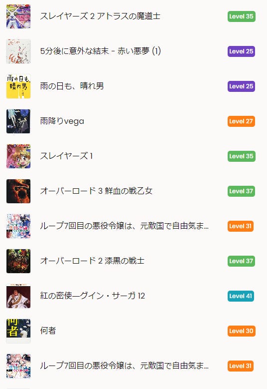 This month’s goals are a bit unique in that I don’t normally combine a fair amount of reading with a ton of SRS time. But like I said earlier, life changes happening SoonTM (time will fly, I just know it) means I’m a bit more motivated than usual. I’m going to be dedicating almost all of July to playing FFXIV so I’d like to still make sure I’m getting close to my book count goal by going a bit harder in June than I normally would. Since I’m using audiobooks for Slayers to help with my focus, I don’t think it’ll be too bad though. The narrator’s speed is actually quite close to my normal reading speed so it hasn’t felt as slow as other audiobooks. I’m really trying to focus on listening better so I can imitate better, so speeding up is not in the cards for me right now.